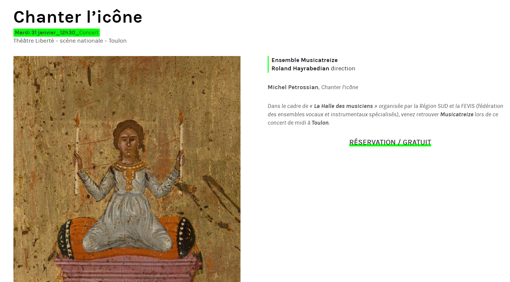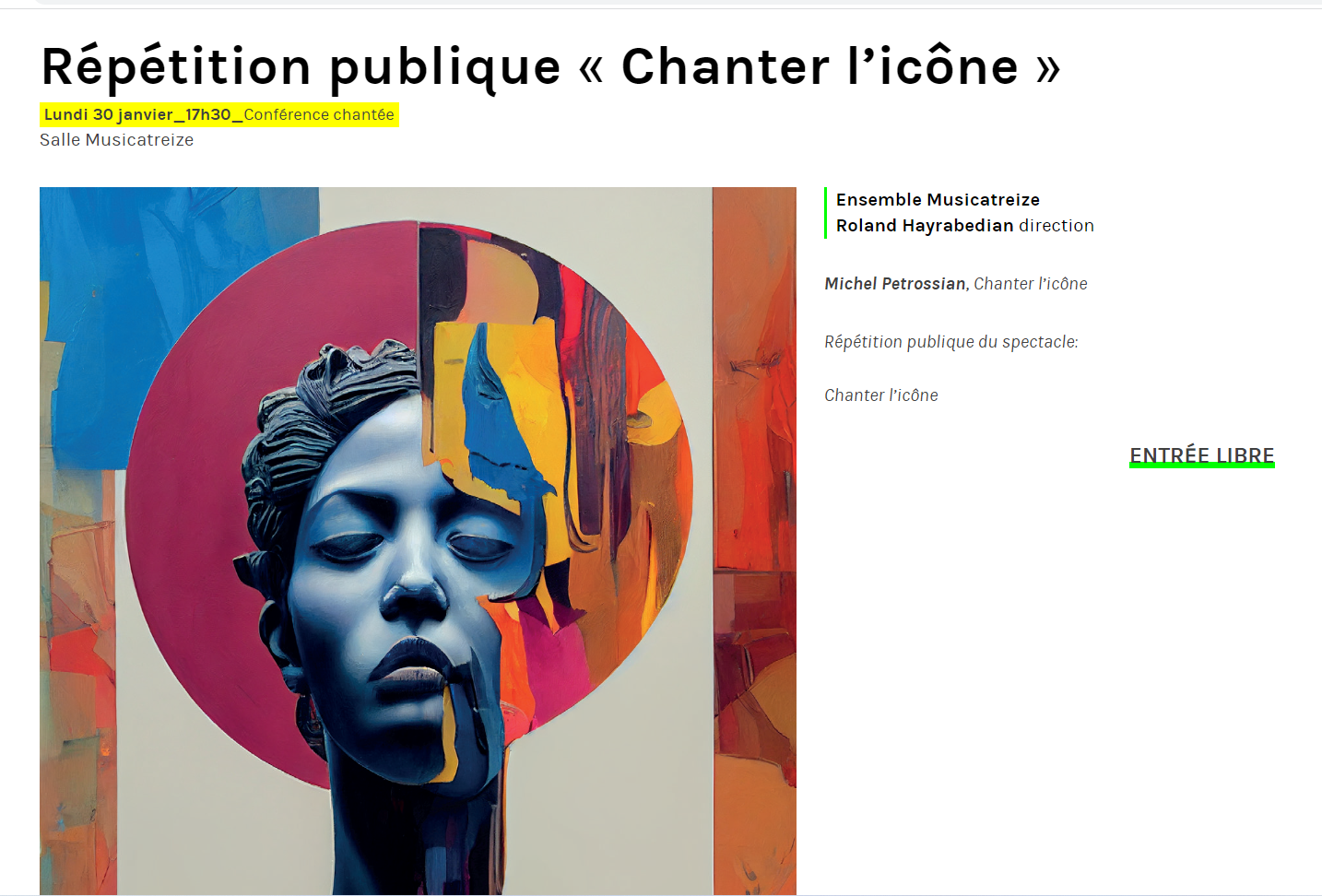 En préparation du concert du 31 janvier à Toulon, l'ensemble Musicatreize propose d'assister à la répétition public de "Chanter l'icône" de Michel Petrossian